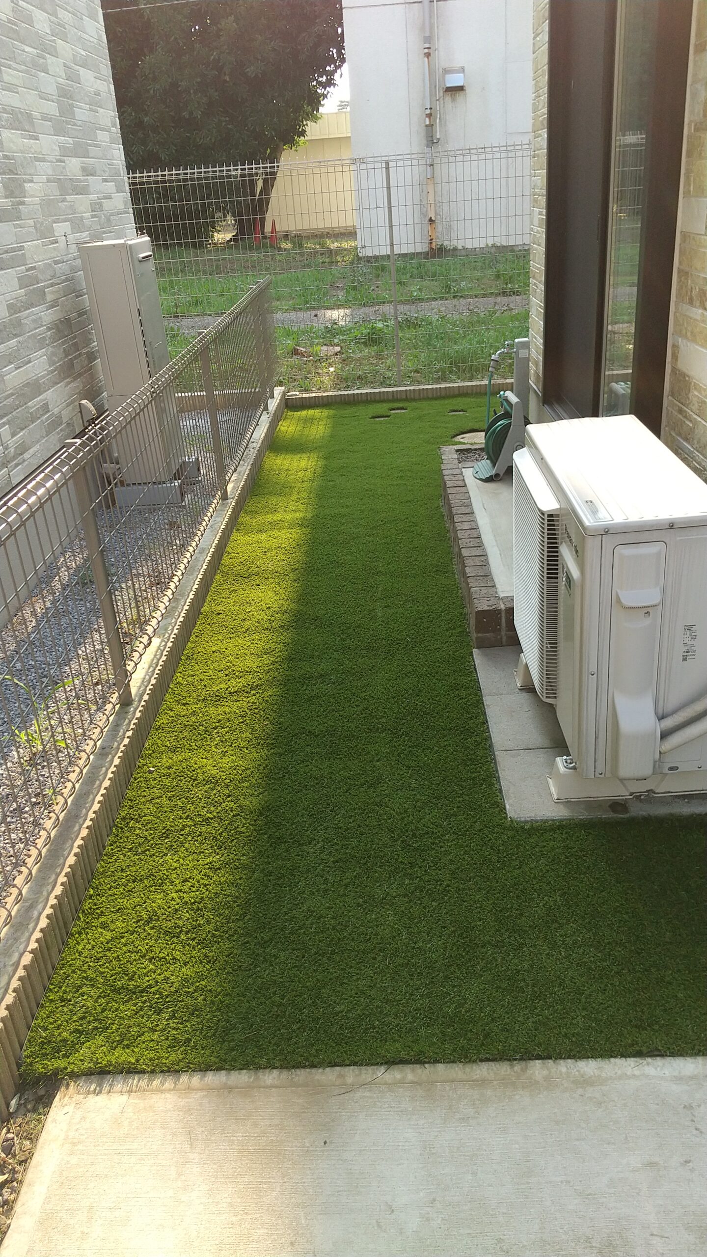 【施行後】人工芝で広く、すっきりしたお庭になりました