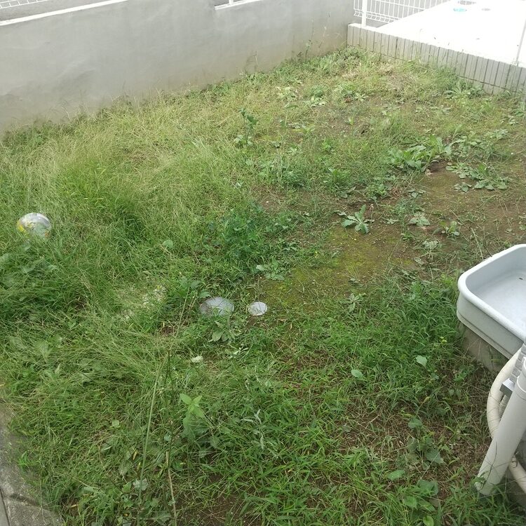 雑草をしっかり撤去し綺麗な人工芝のお庭になりました。
