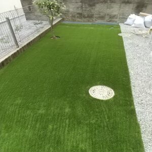 - 整地は真っ平でカンペキだけど、防草シートや人工芝本体のつなぎが今ひとつ