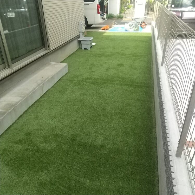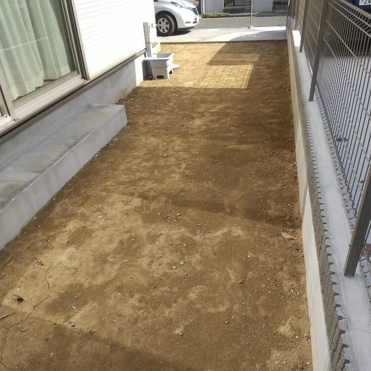 殺風景な土のお庭から綺麗なグリーンのお庭に大変身しました!