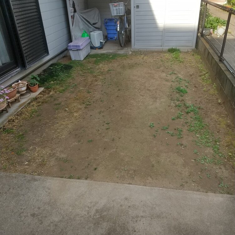 雑草と芝生がまばらに生えており、夏になると草むしりが大変とのことでした。