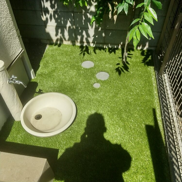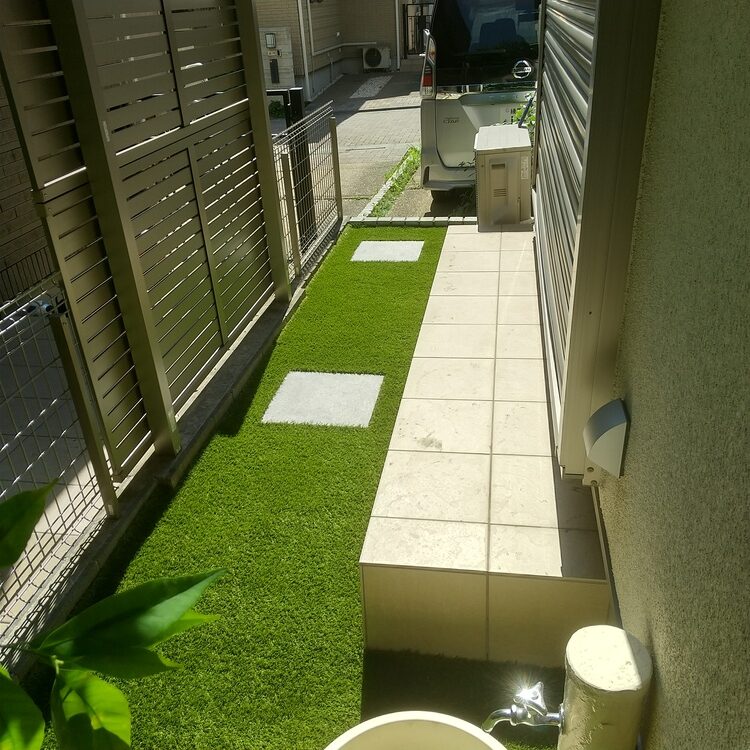 東京都練馬区 川砂利のお庭→人工芝施工事例