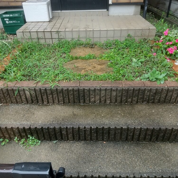 玄関前のステップのみ残しあとは撤去しました。