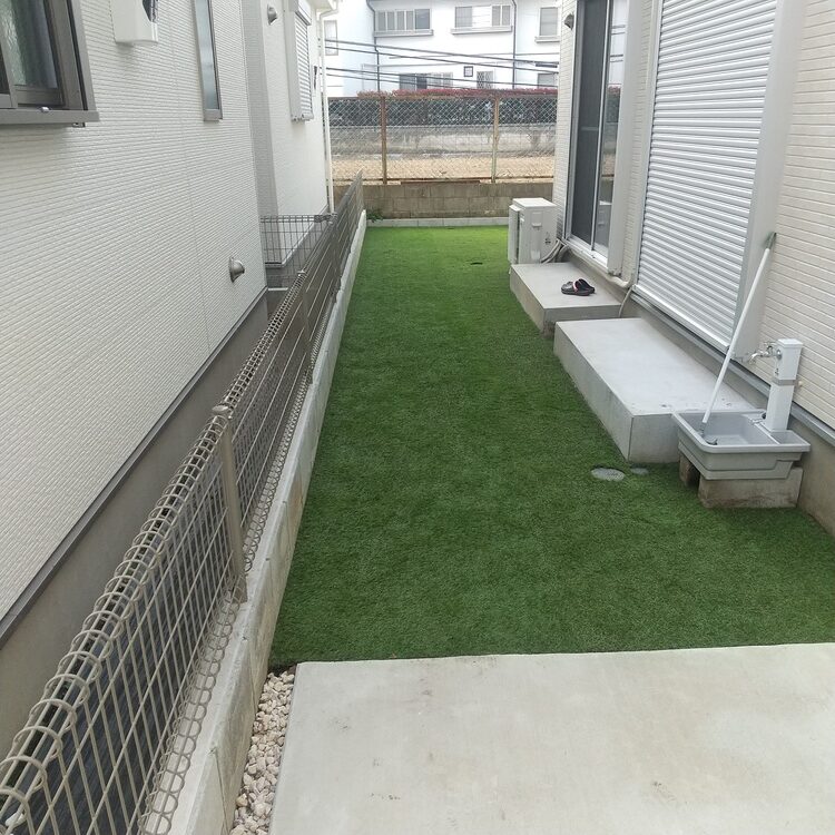 船橋市施工事例です。 殺風景な土のお庭から綺麗なグリーンのお庭に大変身しました! お子さまと素敵な時間をお過ごしください! ありがとうございました!